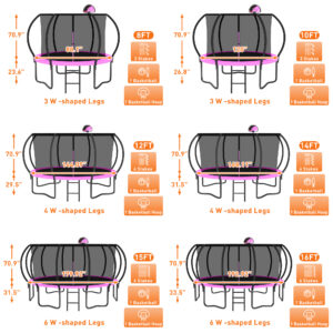 — Trampoline with Basketball Hoop: More accessories, more fun! We’ve added a basketball hoop to the trampoline, taking the excitement to a whole new level. Now you can shoot hoops while bouncing!